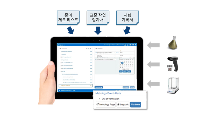 연구원들은 ONE Lab을 사용하여 시험 환경에서 사용자 친화적인 인터페이스로 편안하고 빠르게 자신의 시험 절차를 참조하고 데이터를 입력할 수 있습니다.