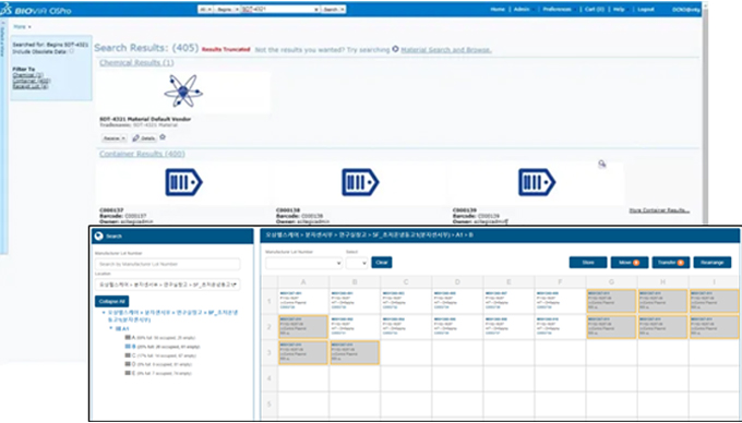 인벤토리 관리 모듈인 CISPro와 결합하여 샘플의 정보 및 생성/입고/보관/사용/폐기 등 모든 샘플 관련 시나리오가 완벽히 구현됩니다.