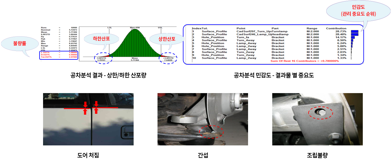 | 목표품질을 맞추기 위한 공차최적화 모듈 | 구동제품(Kinematic)에 대한 공차분석 모듈 | 변형공차(FEM) 공차분석 모듈 |