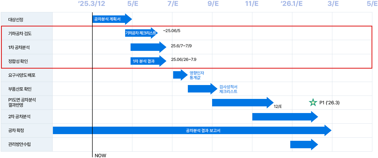 2) 프로세스 각 액티비티별 수행계획을 수립하여 공차분석 계획서를 작성한다.